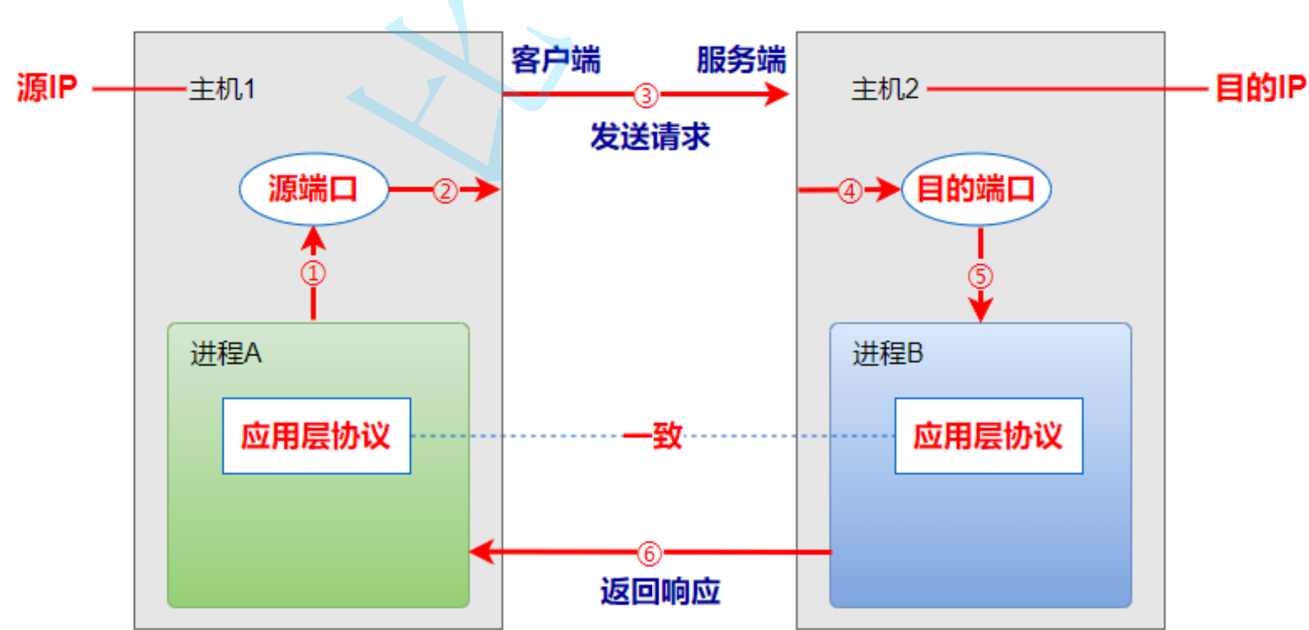 2. 注意⽬的IP和⽬的端⼝号,标识了⼀次数据传输时要发送数据的终点主机和进程