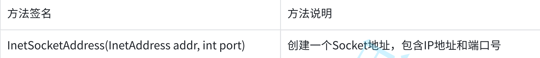 InetSocketAddress ( SocketAddress 的⼦类 )构造⽅法: