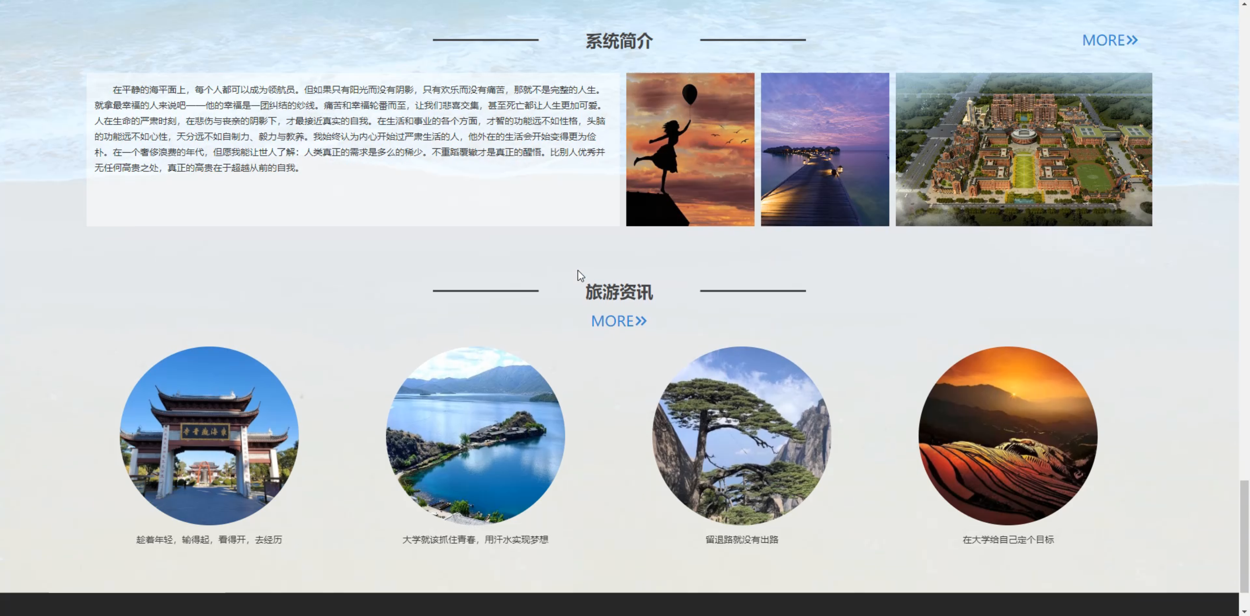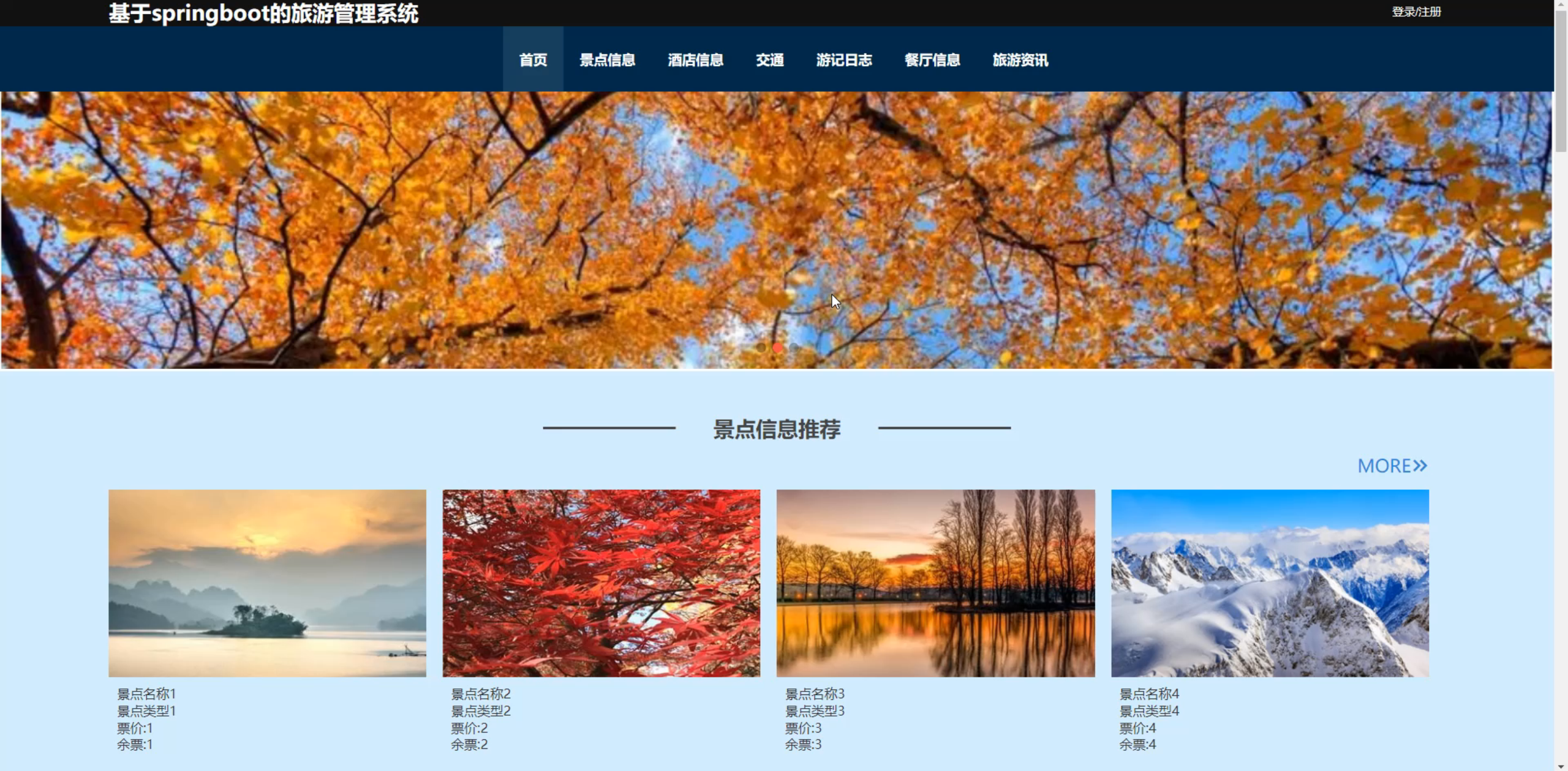 -  产品模块: 旅游线路/景区的列表展示、条件筛选(按价格、目的地等)、详情查看(图文介绍、行程安排、费用说明)。