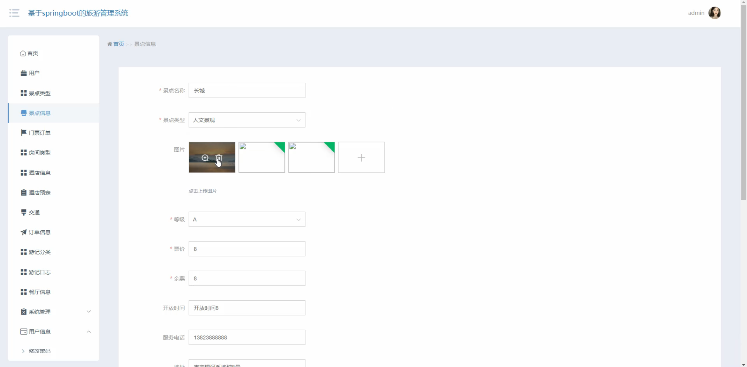 -  内容管理: 对旅游线路、景区景点、新闻资讯等进行增删改查。