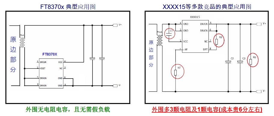 | FT8370CD | DIP-8 | 通过Drain脚+引脚散热 | 2.5A | 插件,维修方便 |