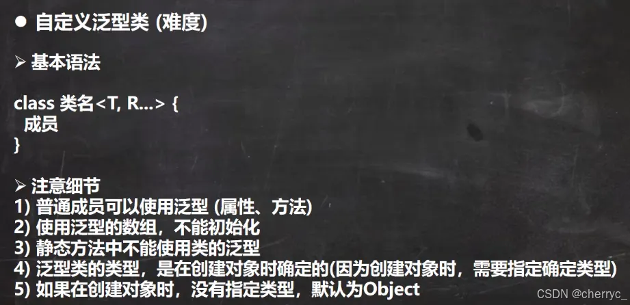 - 泛型类型不能用于异常处理(如 catch (MyException<T> e)错误)