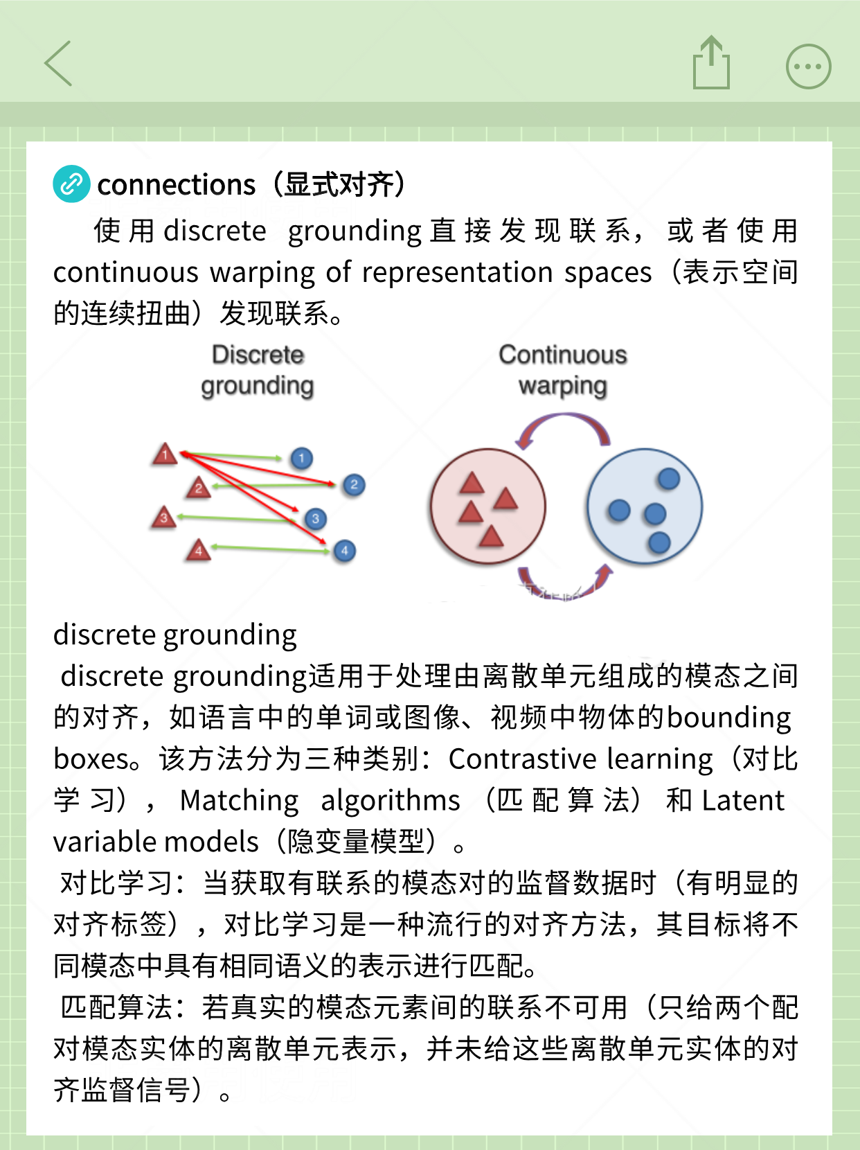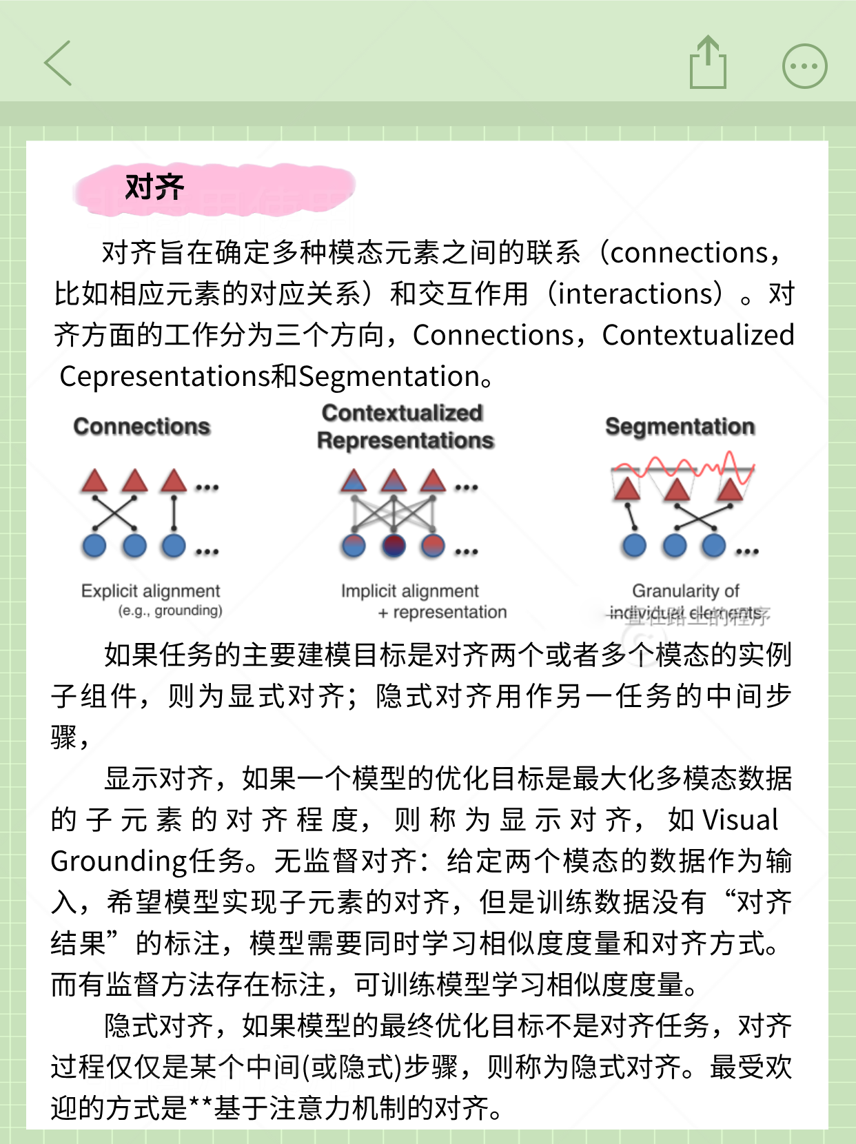 大模型-多模态机器学习1.对齐 1.1connections(显式对齐) 1.2 Contextualized Representations(隐式对齐) 1.3 Segmentation2.图文中所用的对齐方法