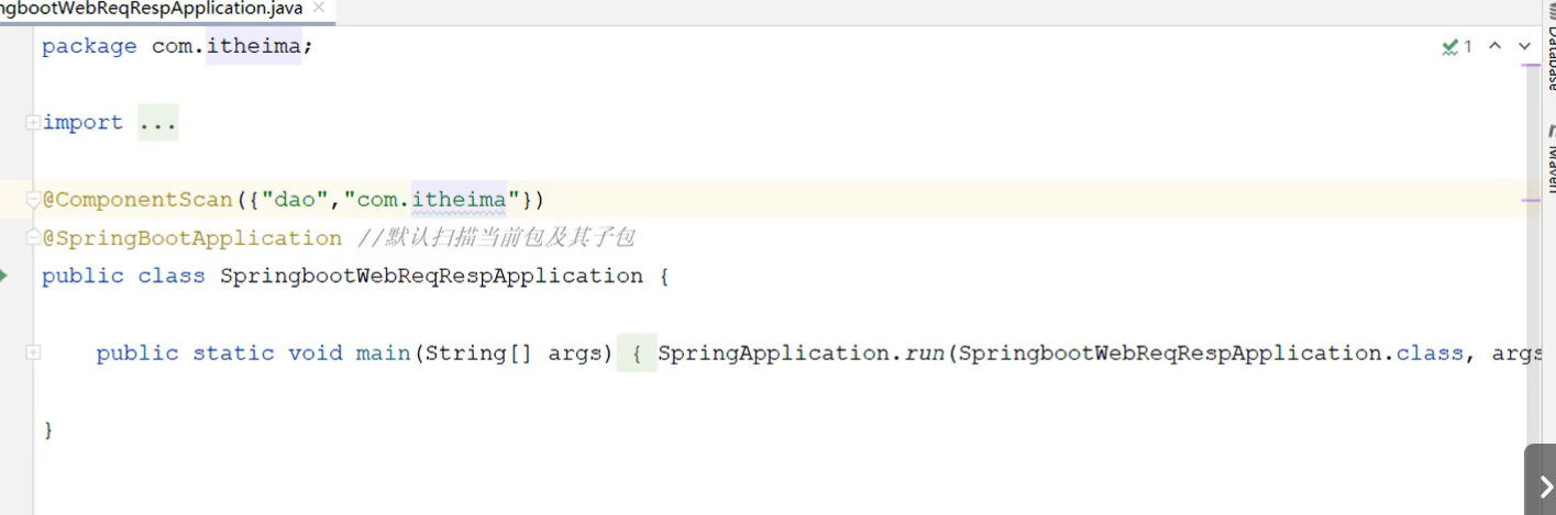 在启动类中通过ComponentScan注解手动设置扫描范围(不建议)