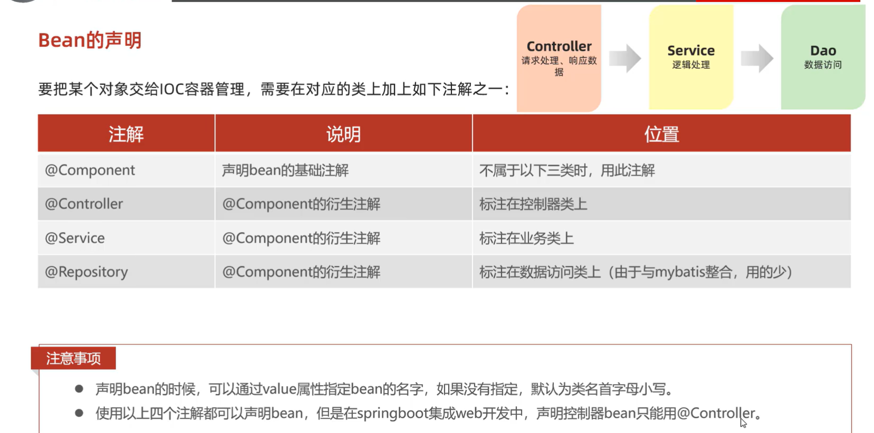 @Component 注解:将当前类交给IOC容器管理(控制反转)