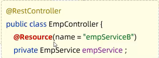 - @Autowired+- @Qualifier: 这是 Spring 原生的注解组合。先按类型匹配,如果有多个同类型 Bean,再通过- @Qualifier指定的名称进行精确匹配。它的匹配过程是 “类型 -> 名称”。