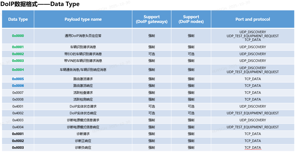 DoIP协议中常用的数据类型及其具体使用场景,基于ISO 13400标准规范。