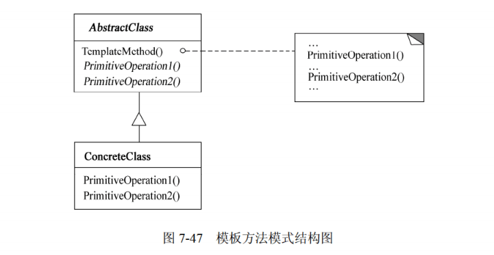 - 结构: - 抽象类(Abstract Class):定义算法骨架(模板方法),包含若干抽象基本操作(由子类实现)和具体操作(子类可继承或重写)。