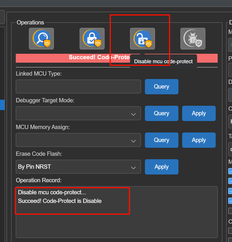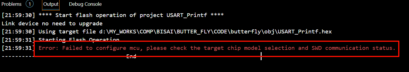 Error: Failed to configure mcu, please check the target chip model selection and SWD communication status.