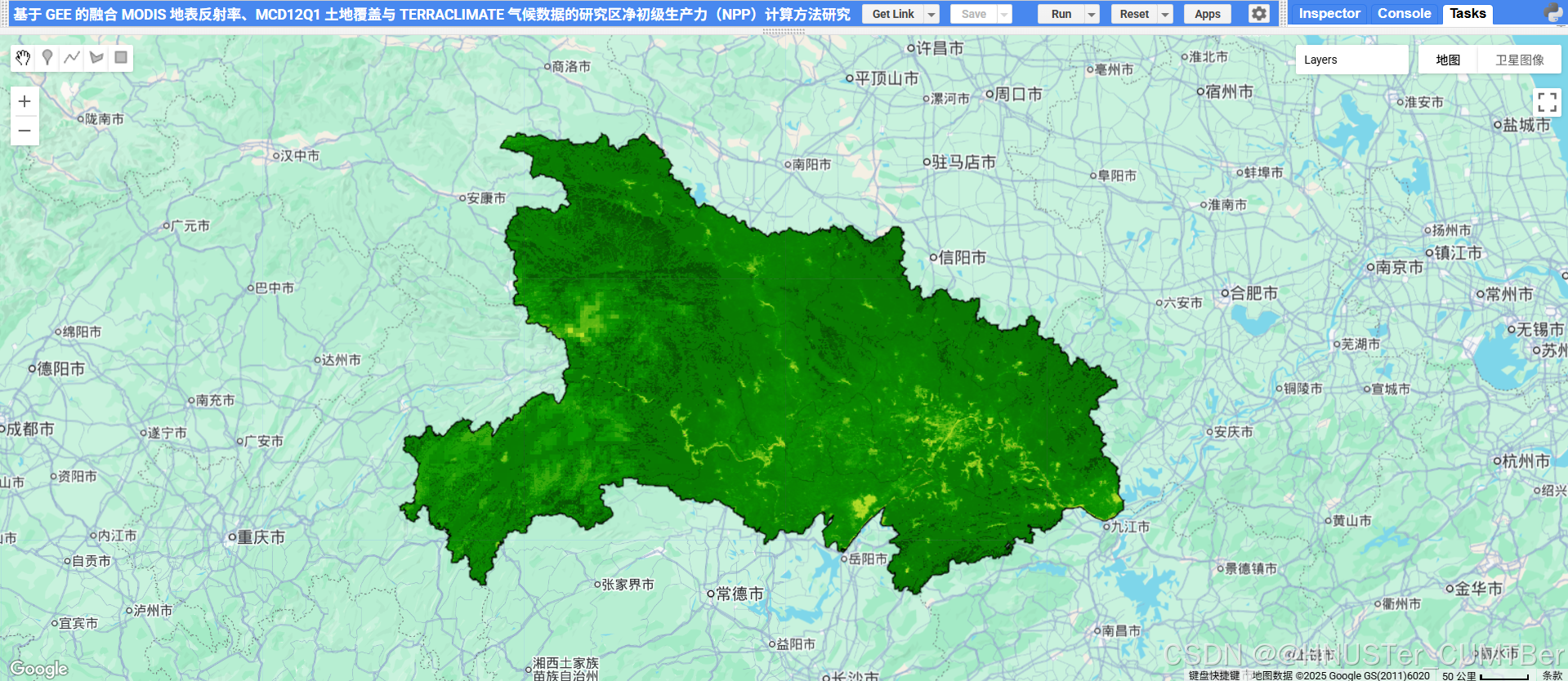 基于 GEE 的融合 MODIS 地表反射率、MCD12Q1 土地覆盖与 TERRACLIMATE 气候数据的研究区净初级生产力(NPP)计算方法研究