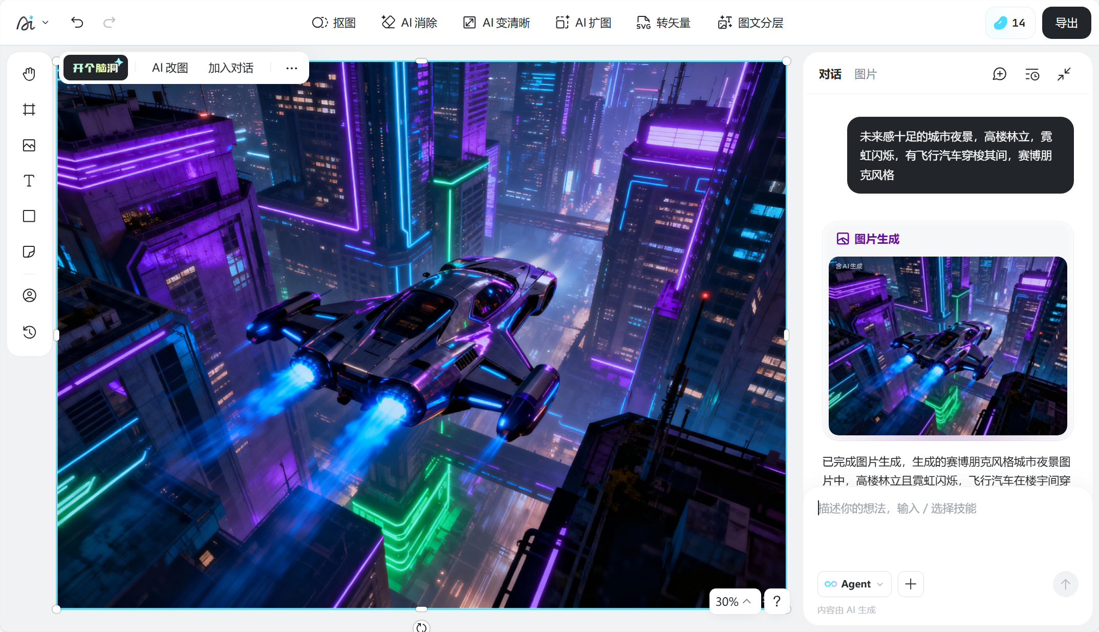 - 撰写精准提示词:将您的创意转化为具体的提示词。例如,如果您想生成一张“未来感十足的城市夜景,高楼林立,霓虹闪烁,有飞行汽车穿梭其间,赛博朋克风格”,请在输入框中详细描述。可以尝试使用中文或英文提示词,具体取决于平台对哪种语言的优化更好。