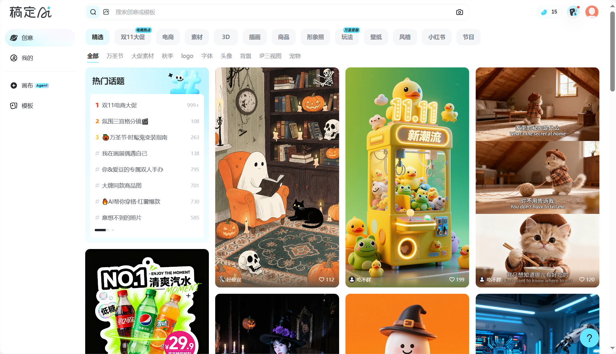 作为一款集成了多项AI能力的在线设计平台,稿定AI为用户提供了从文本到图像生成、智能编辑到图像优化的全链路解决方案。我们将以稿定AI为例,探讨如何高效利用AI进行视觉创作。