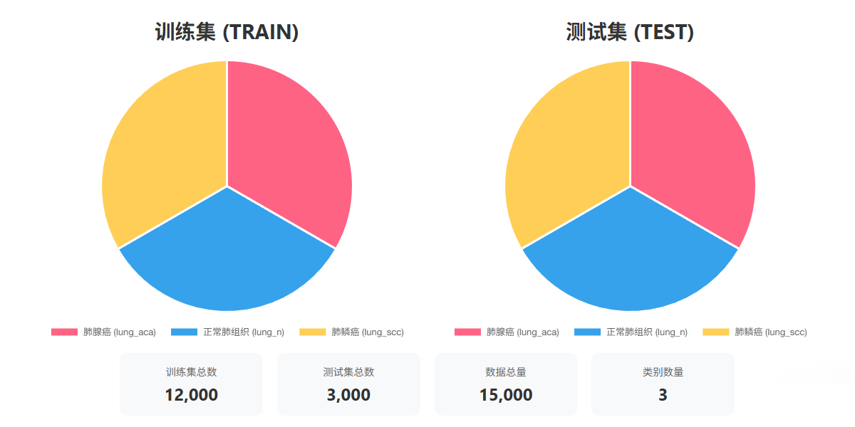 (2)数据结构:包含训练集与测试集,分为三类样本(肺腺癌、良性肺组织、肺鳞状细胞癌)。