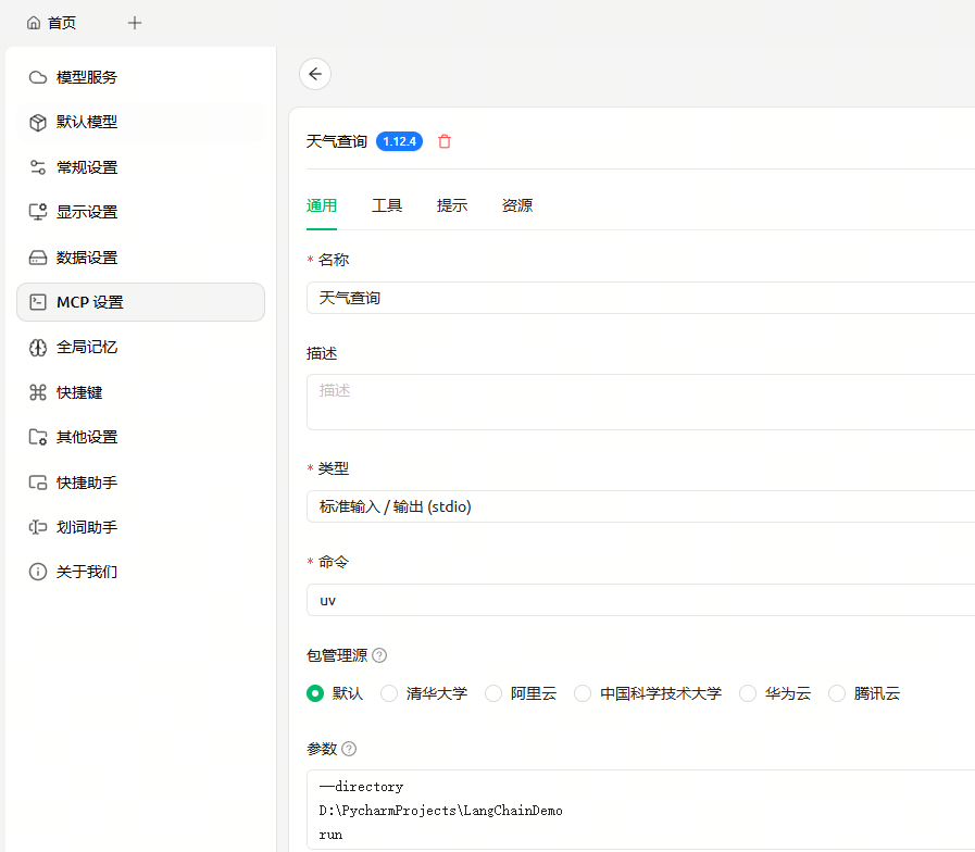 为方便测试 mcp 服务器,我们暂时先不开发 mcp 客户端,而是通过第三方客户端工具调用。