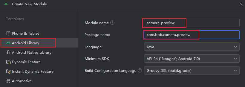 选择Android library, 填上名字和包名
