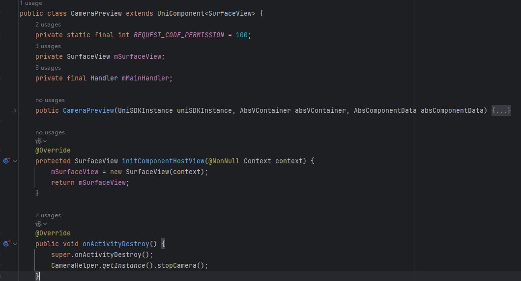 7. 创建一个CameraPreview类集成UniComponent<SurfaceView>