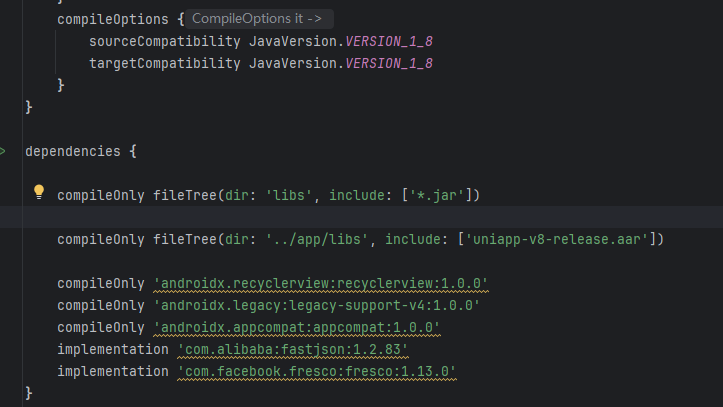 2. 把dependencies下面的依赖都删除,将uniplugin_component下面的build.gradle文件中的依赖都复制过来