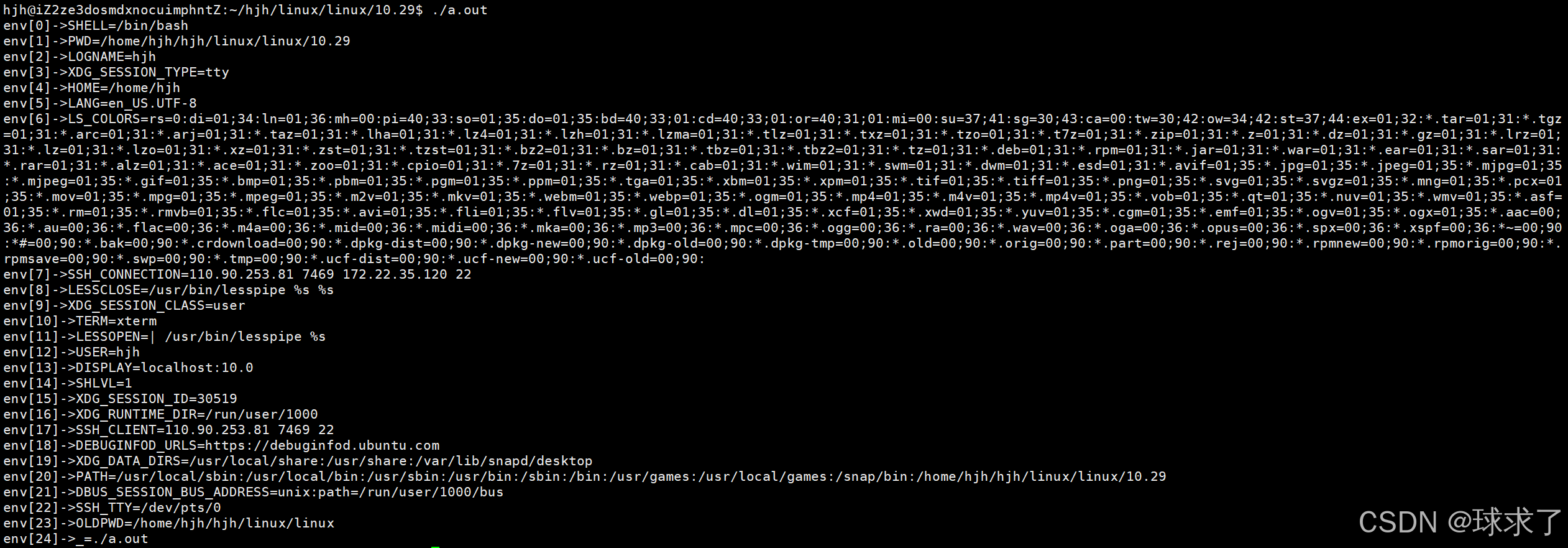{char *who=getenv("USER");if(strcmp("hjh",who)==0){printf("正常执行\n");}else{printf("error");}return 0;