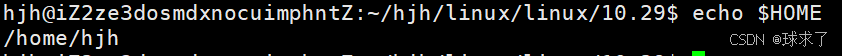 当执行 cd ~ 为什么会直接转到 /home/hjh 中,因为在执行这条命令时,把 ~ 替换为环境变量 /HOME 中存储的目录,所以直接就跳转到 /home/hjh 中了。