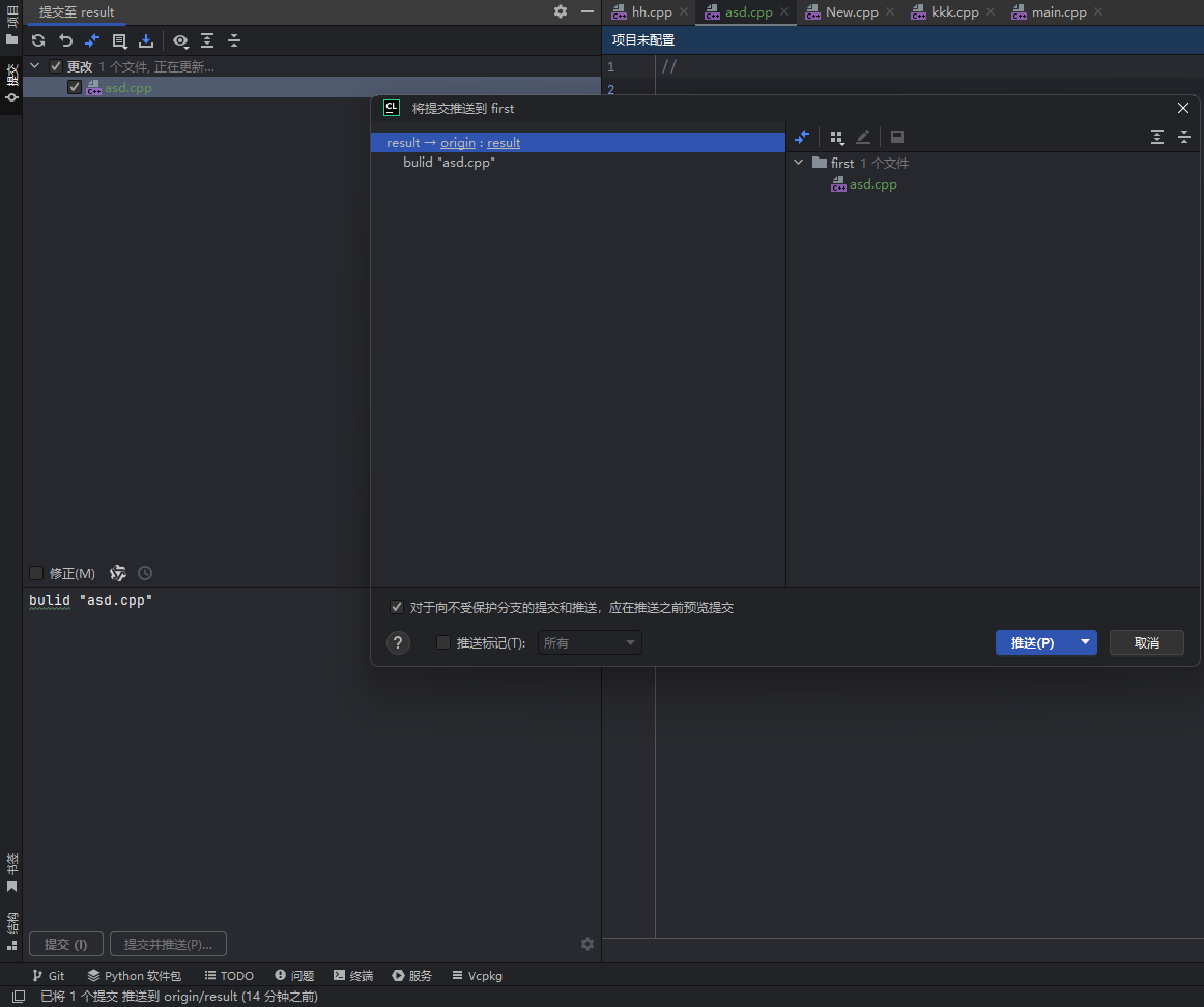 此时本地已经切换到了result分支,下次push就会推送到result分支上。