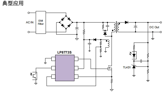 LP8773S特别适用于12V输出的隔离AC/DC反激变换器,例如: