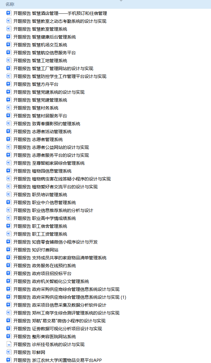以上是H同学的毕业设计答辩过程,如果你现在还没有参加答辩,还是开题阶段,已经选好了题目不知道怎么写开题报告,可以下面找找有没有自己符合自己题目的开题报告内容,列表中的开题报告都是往届真实的开题报告可参考。
