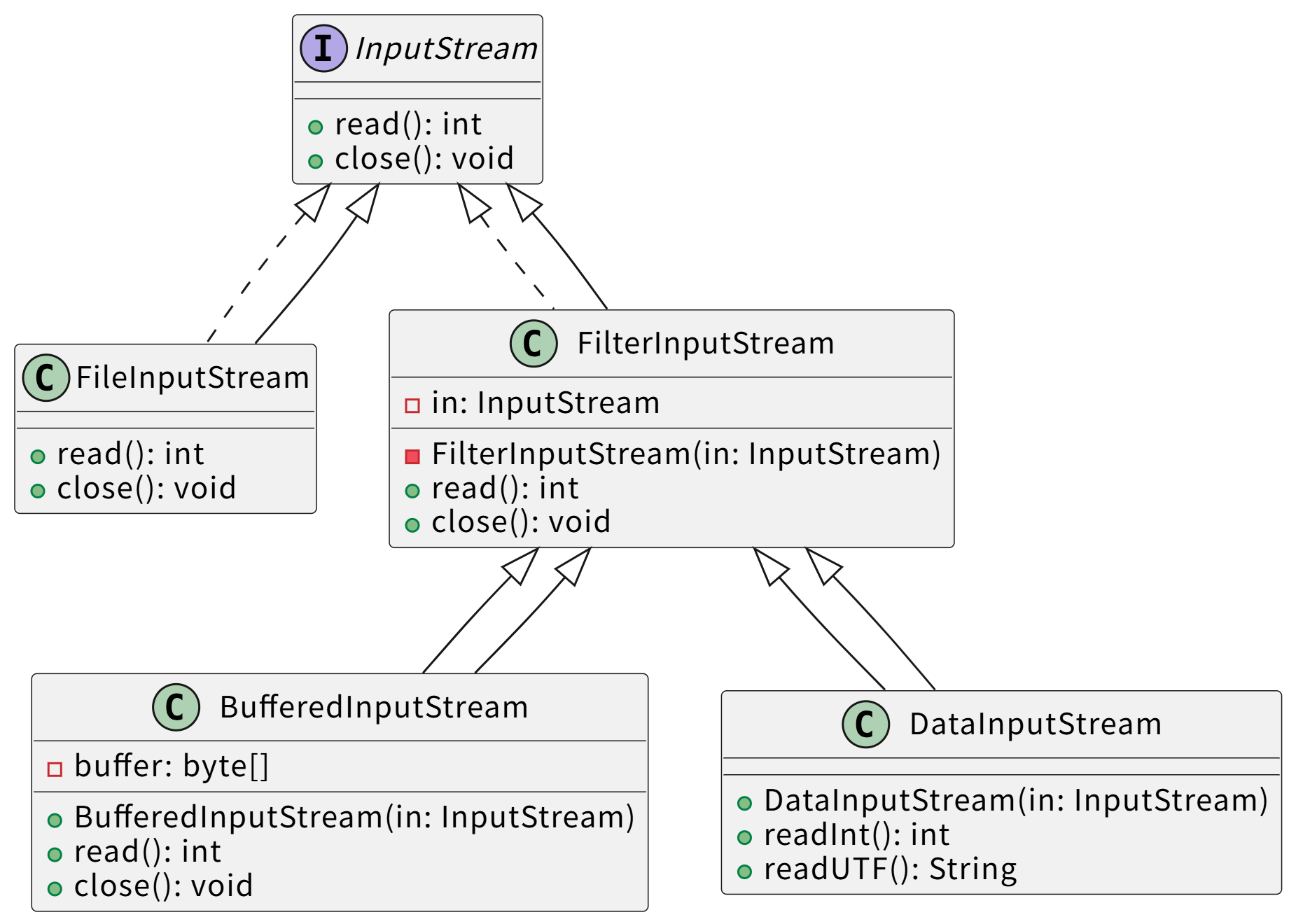 -  避免类爆炸:如果用继承实现这些组合,需要 BufferedFileInputStream、BufferedByteArrayInputStream 等无数类