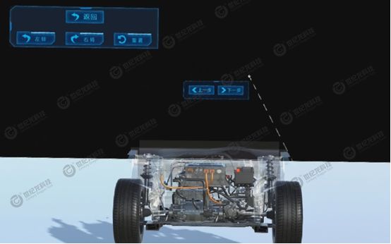 软件突破传统静态图示限制,通过计算机视觉与实时渲染技术,动态演示电驱系统的工作流程。学生可以直观看到高压电流如何从电池包输出,经过充配电总成,传递至驱动电机控制器,再转换为交流三相电驱动电机运转,最终通过减速器带动车轮转动。整个能量传递路径清晰可视,帮助学生建立系统级、动态化的知识认知。