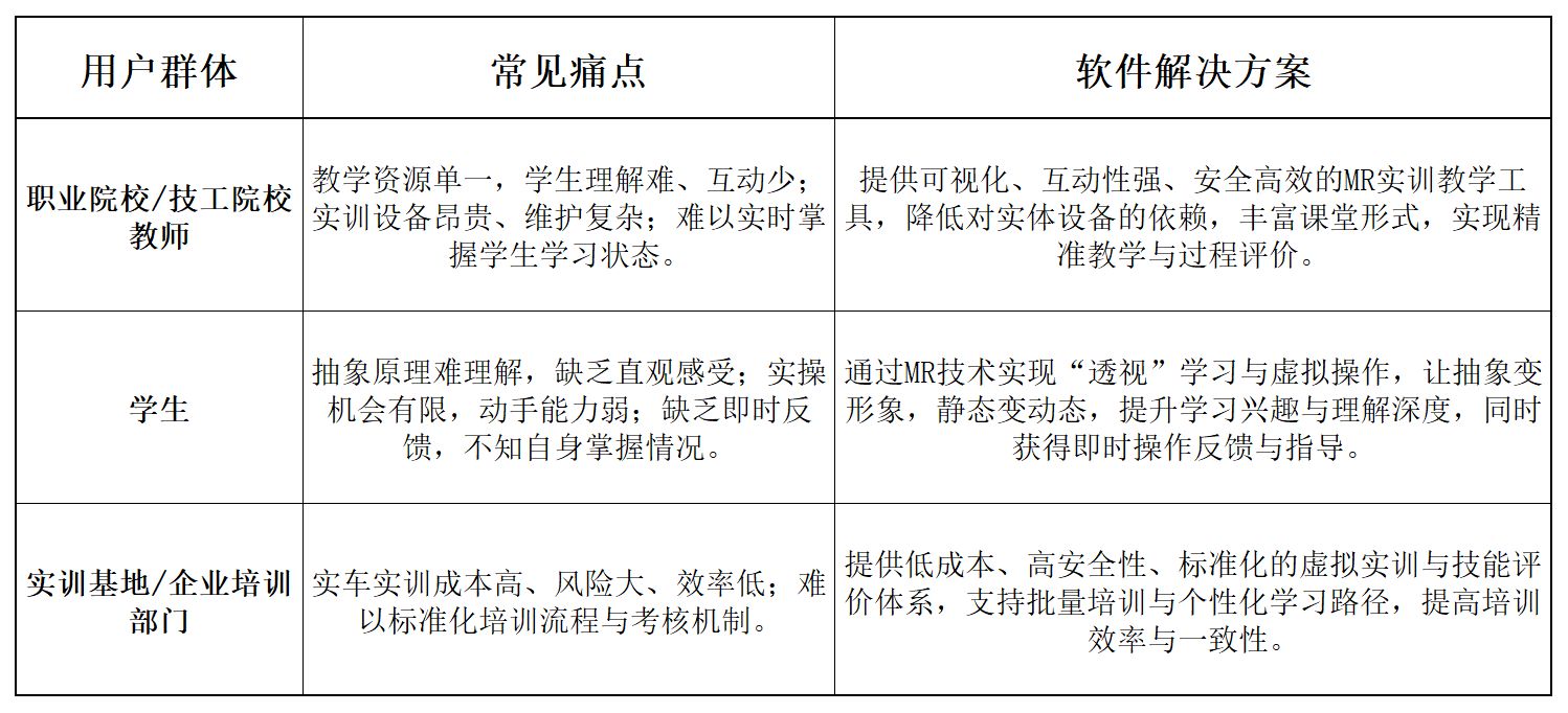 作为深耕教育技术融合与实训创新的专业团队,我们深刻洞察到这一痛点,依托混合现实(MR)、增强现实(AR)、计算机视觉、5G通信等前沿技术,面向职业院校、技工学校及汽车专业培训机构,研发推出了一款面向新能源汽车动力系统拆装与检测的MR实训教学软件。