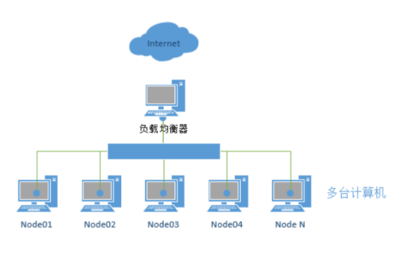 每个节点的性能和配置可能不同,根据算法,可以分配不同的权重到不同节点上,以实现不同节点的资源利用。如下图所示网络访问通过负载均衡器,将请求分布到不同节点上。