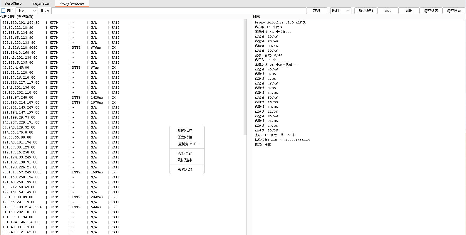 一个轻量、高效、稳定的 Burp 扩展,用于快速导入、验证、管理和切换代理,支持 HTTP 和 SOCKS5。