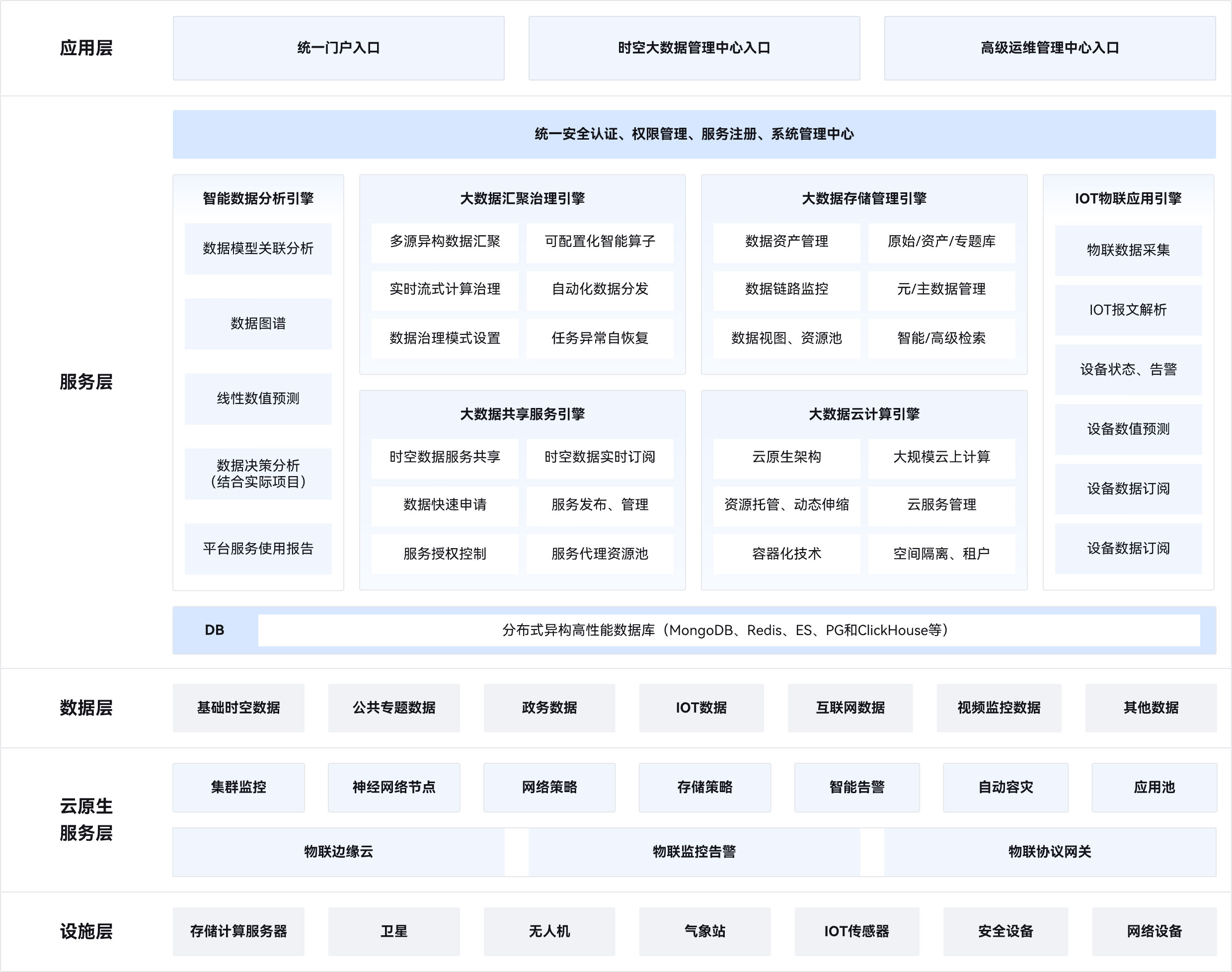 基于分布式异构高性能数据库,实现时空大数据的分布式存储、高效存取、精确检索和并发响应,提供数据管理和数据迁移能力。