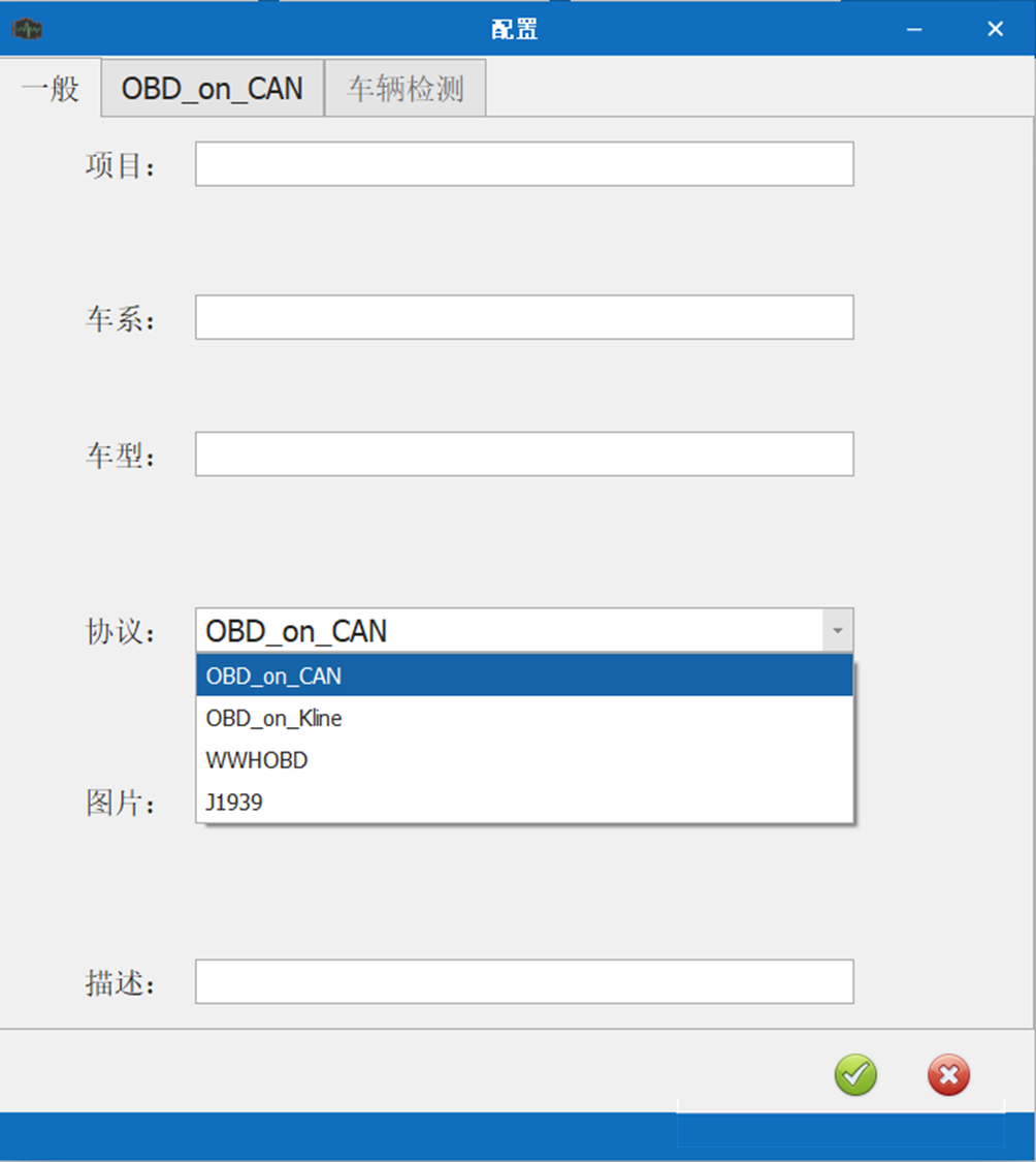 Q-OBD诊断仪主要包括:OBD(ISO 15031)、WWHOBD(ISO 27145)和SAE J1939-73协议,同时提供这三种协议的ODX模板,并在Q-OBD软件中做了相应的集成,因此用户只需在配置界面进行简单配置即可完成。