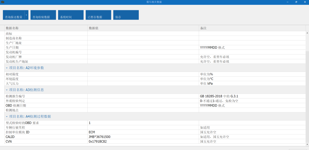 这款诊断仪除了可读取简单的车辆信息,如当前车速、累计里程和故障码等,还可读取国六标准需要的数据如OBD型号、ECU版本号、VIN、CVN和CALID等,且数据可被一键上传。以下为读取的车辆测试结果展示界面和标准数据上传界面。