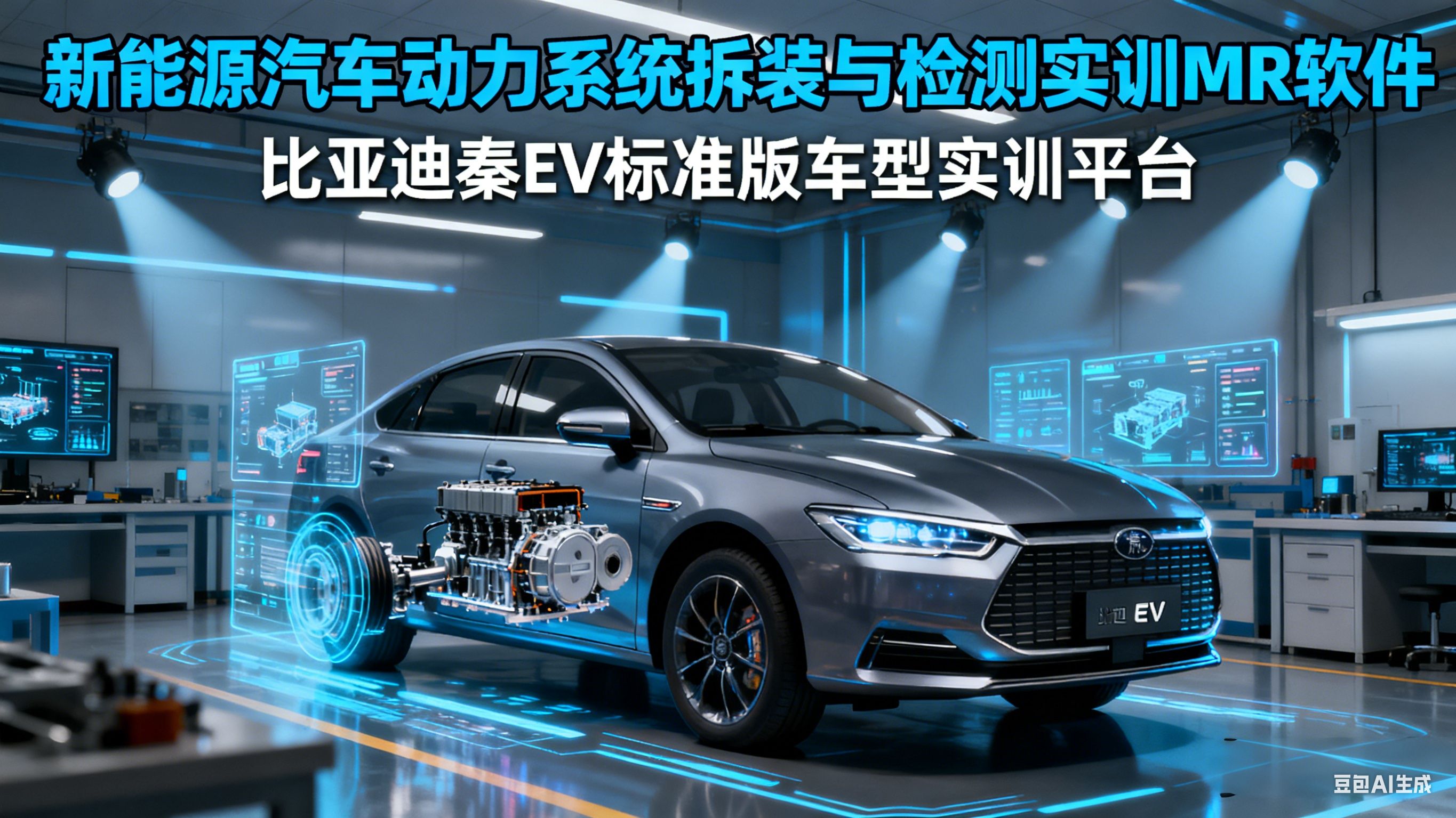 全息结构展示 以比亚迪秦EV标准版为原型,软件采用透明化设计理念,虚拟展示车壳与内饰,实体化呈现动力电池、高压线束、充配电总成、电机控制器等核心部件。这种设计让抽象的电气原理变得直观可见。