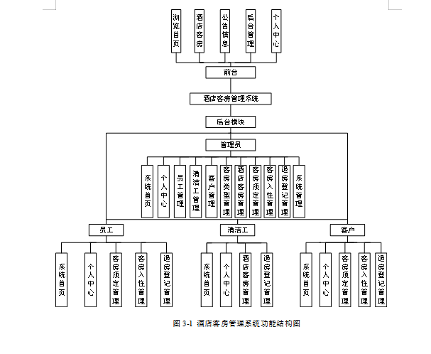 本课题要求实现一套酒店客房管理系统,系统主要包括管理员模块和客户、清洁工、员工模块的功能模块;