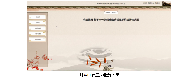 员工登录系统后,可以对系统首页、个人中心、客房预定管理、客房入住管理、退房登记管理等功能进行相应操作,如图4-11所示。