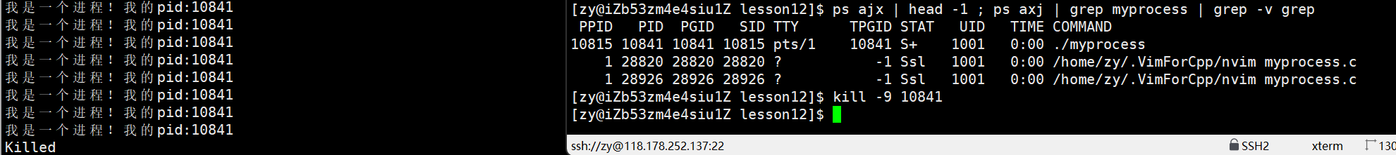 kill -9 pid 同样具有杀死进程的作用,也就是说,如果我们想要杀掉进程,除了ctrl+c,我们也可以使用kill。
