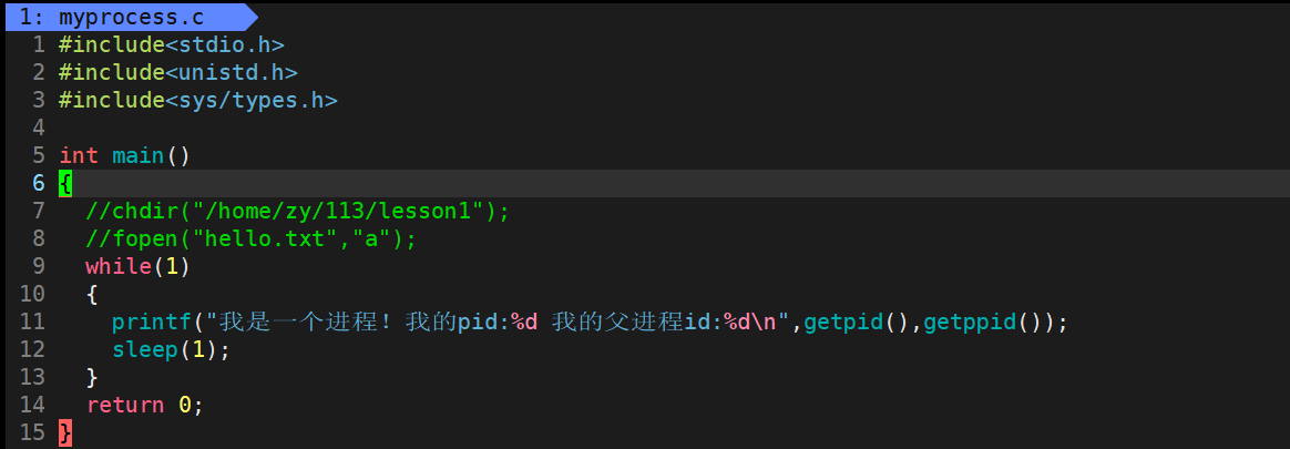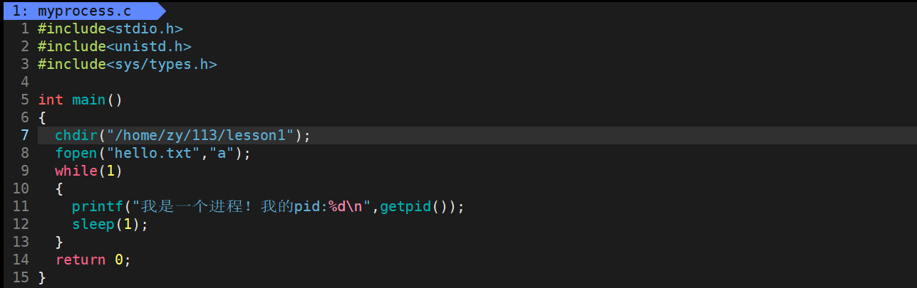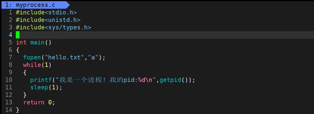 第一步是创建一个myprocess.c文件和一个Makefile文件: