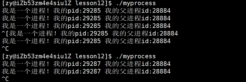 我们前面了解过一个正在运行的程序可以使用ctrl+c强制结束,原因是ctrl+c是用来杀掉进程的!但我们今天是在进程视角了解,我们在结束进程之后重新运行程序,我们发现重启后的pid发生了变化,也就是说我们每次启动程序,它的pid都是不一样的。其实在linux中,pid是以不断递增的整形值进行分配的,因为你在退出程序并重启过程中,还启动了其他任务,所以看起来这个pid值并不连续。这些并不重要,只要pid在运行中是唯一值就行了。