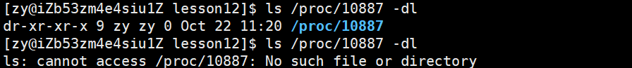 如果我们想要在proc目录查找在运行的进程文件,使用ls /proc/pid即可,如果我们将该进程杀掉后,再查看就会查找不到了。
