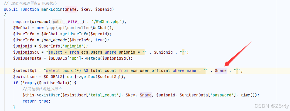 它的scan方法调用markLogin,且从$data中提取EventKey和FromUserName字段