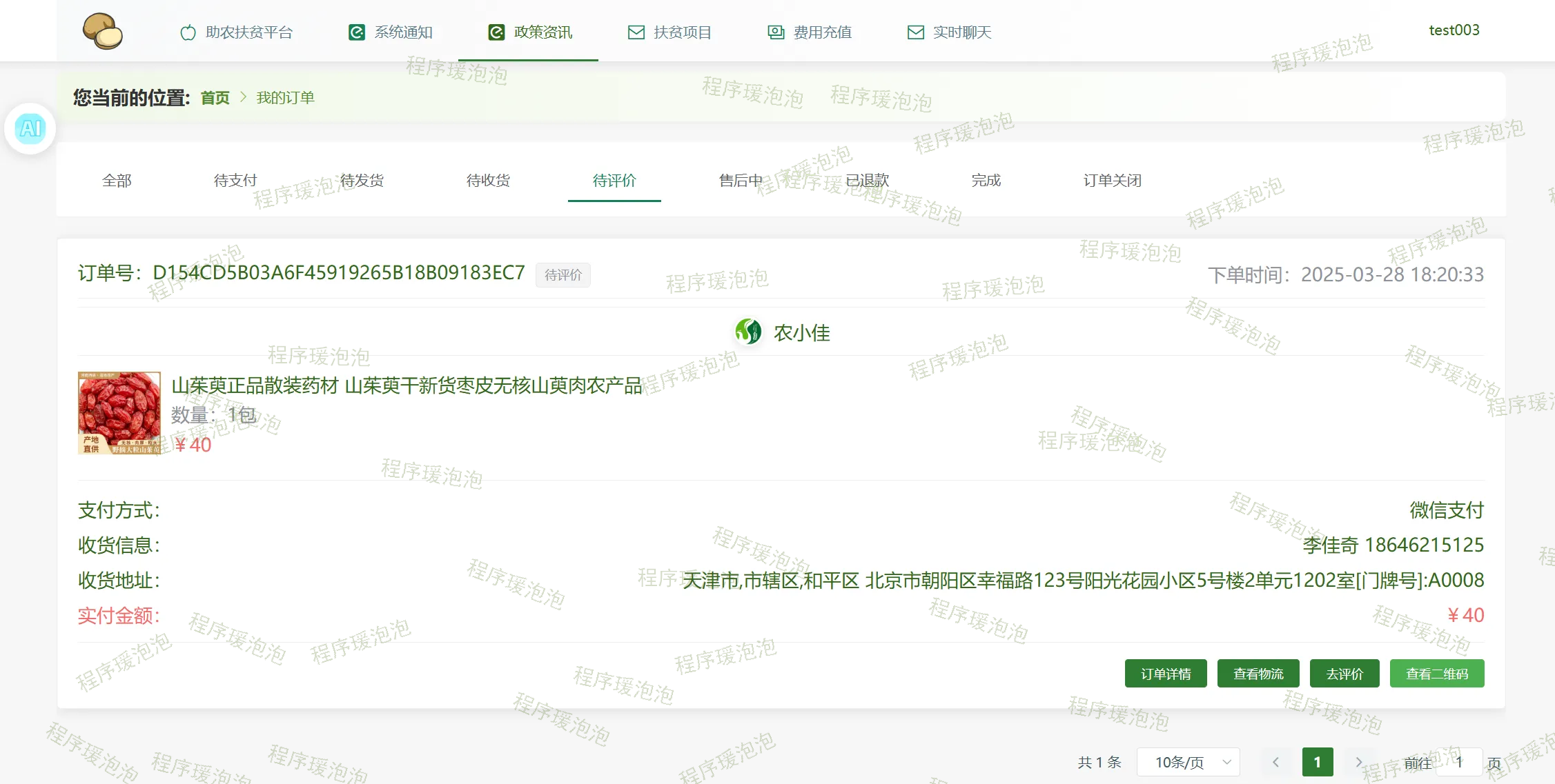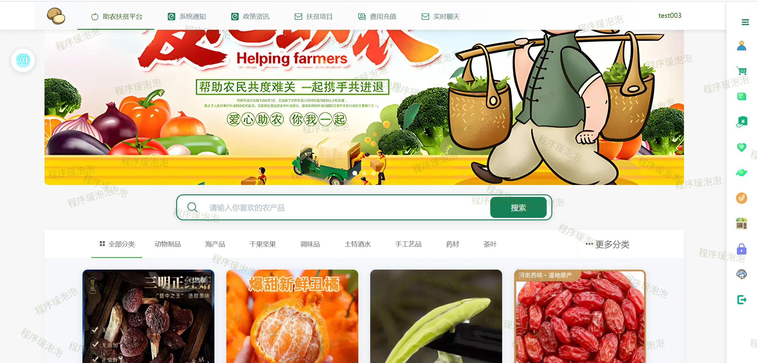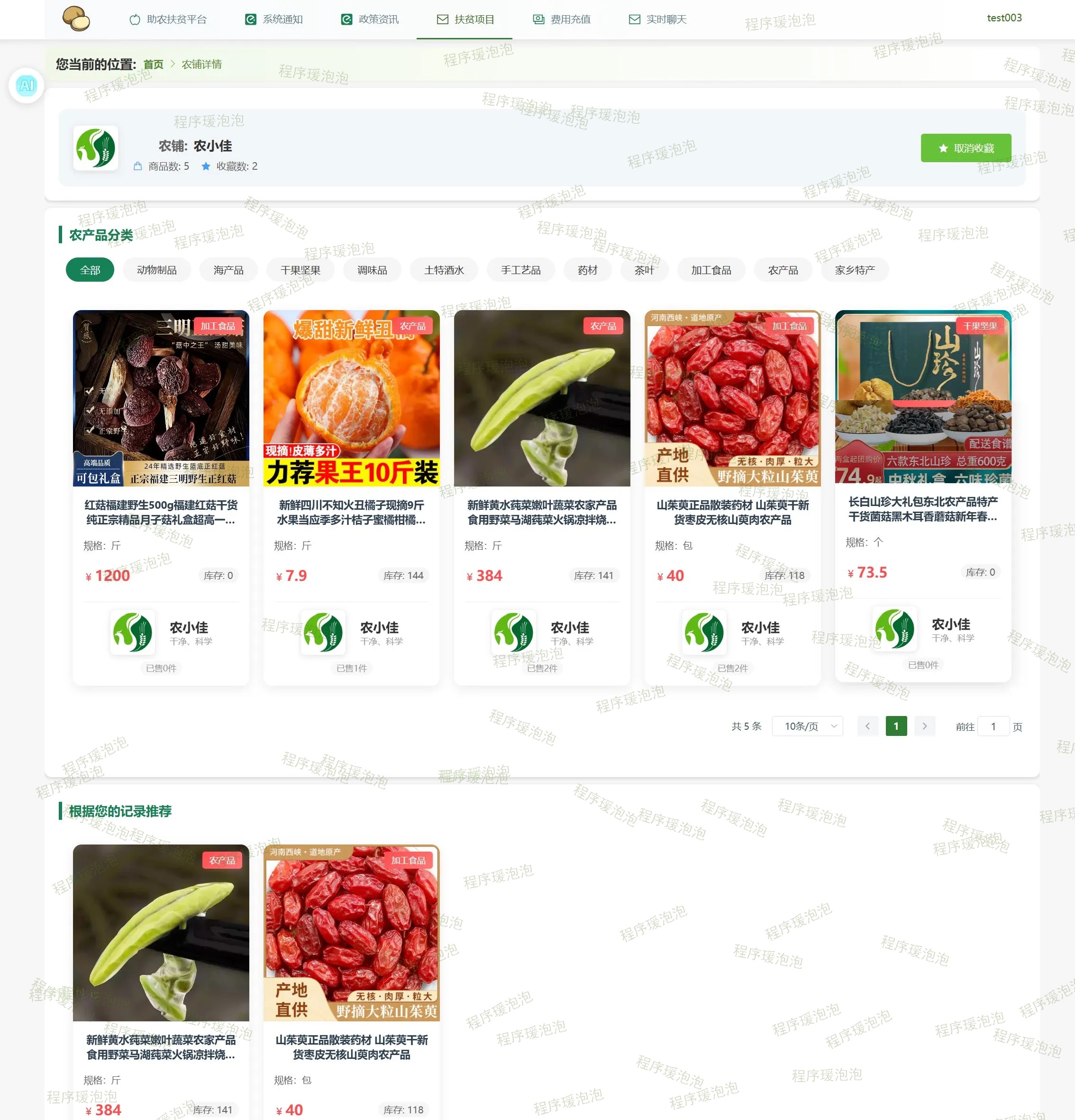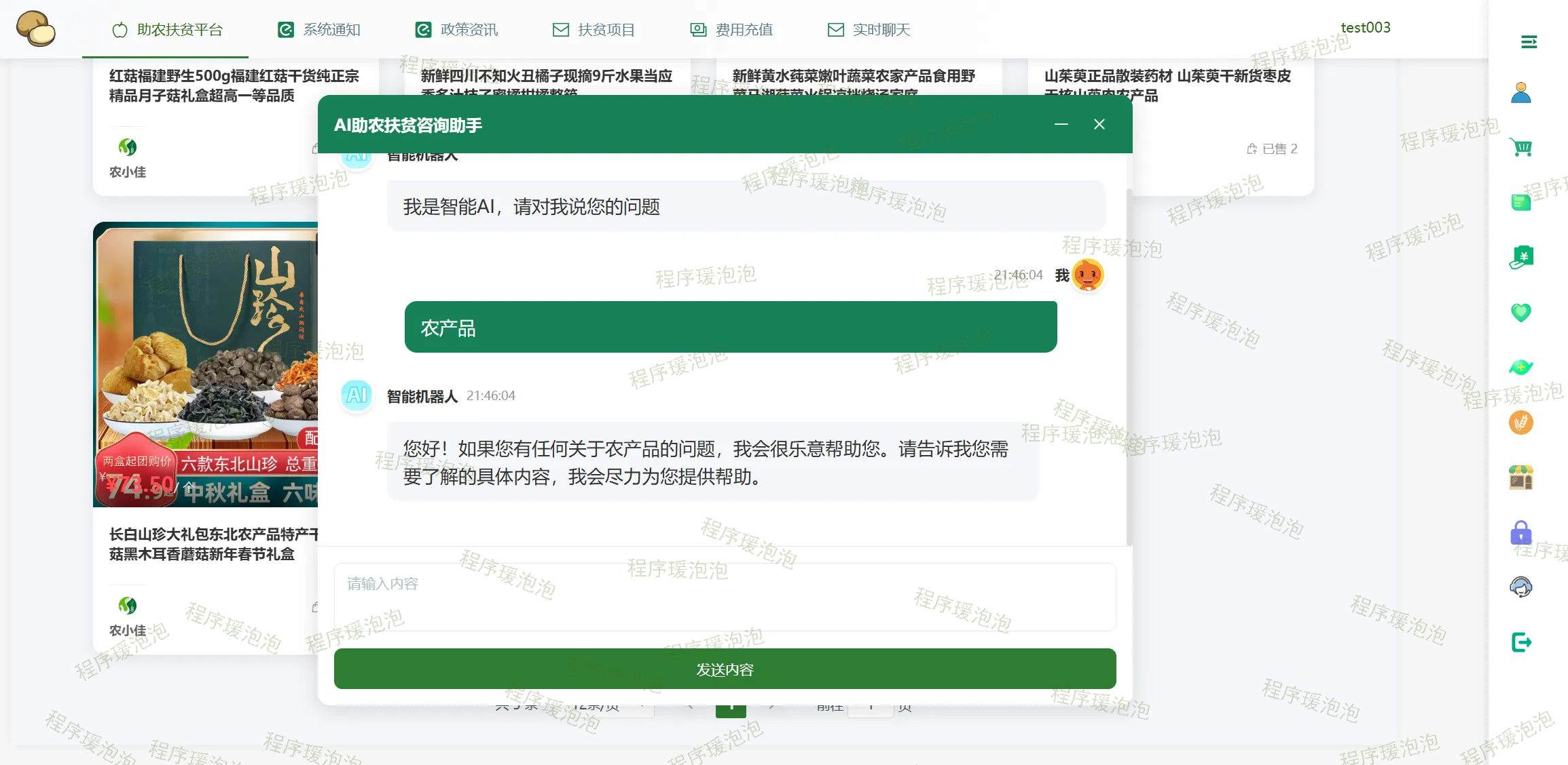 基于SpringBoot+Vue的助农扶贫平台(AI问答、WebSocket实时聊天、快递物流API、协同过滤算法、Echarts图形化分析、分享链接到微博)