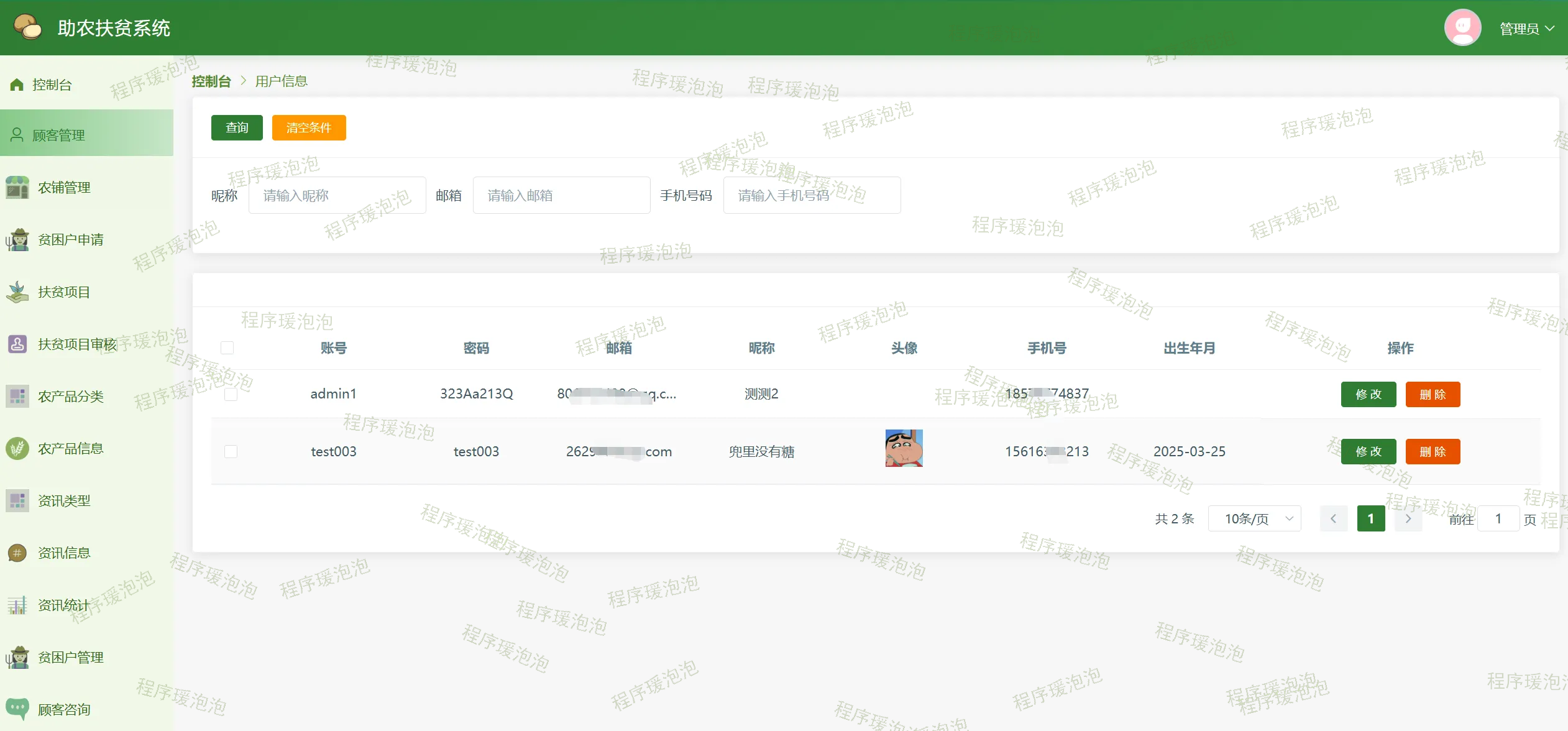 2.3.1 顾客管理