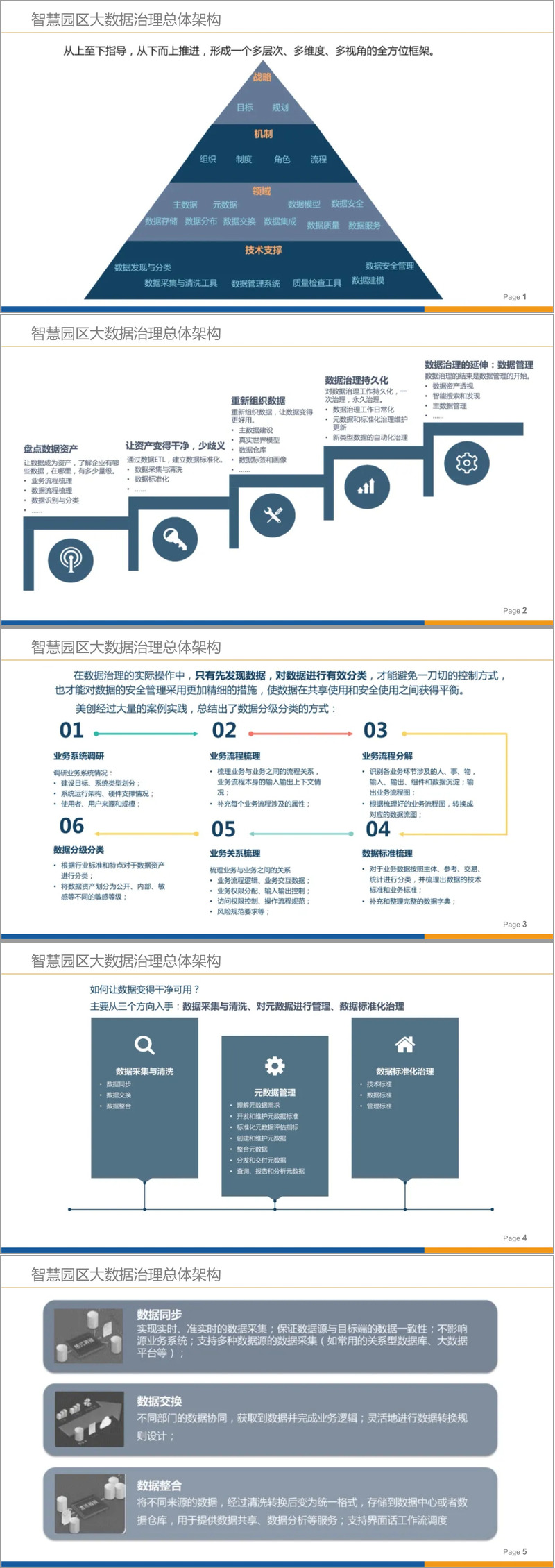 作为园区数字化转型的核心支撑方案,《园区大数据治理解决方案》围绕智慧园区建设痛点,构建了全链路、分层级的大数据治理体系,涵盖综述、架构、演进、实施及治理五大核心模块,为园区实现 “智能化到智慧化” 转型提供系统性路径。