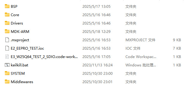 | 2. Core(MCU 驱动程序) | 基于 Drivers 层,面向 MCU 内部外设的初始化与管理,是连接底层 SDK 与上层板级逻辑的中间层。 | 1. 负责 MCU 内部核心功能的配置(如系统时钟、中断优先级、IIC/SPI 外设参数初始化);2. 是整个程序的 “入口载体”,包含主函数,统筹 MCU 整体运行逻辑;3. 不涉及板上外部外设(仅管 MCU 内部)。 | 1. main.c(程序入口,包含主循环);2. 时钟初始化函数(如SystemClock_Config());3. 内部外设配置代码(如IIC_Init())。 |