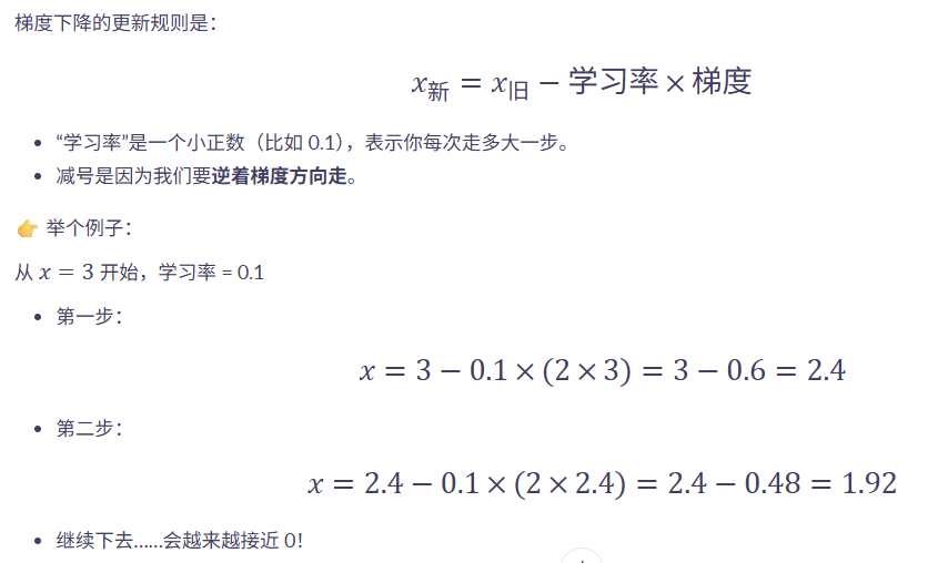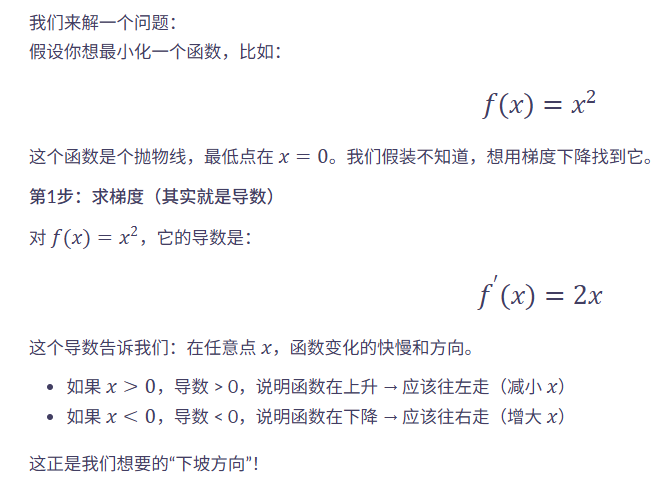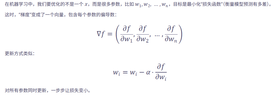 👉 每次都往最陡的下坡方向走一步,这样大概率能慢慢接近谷底。