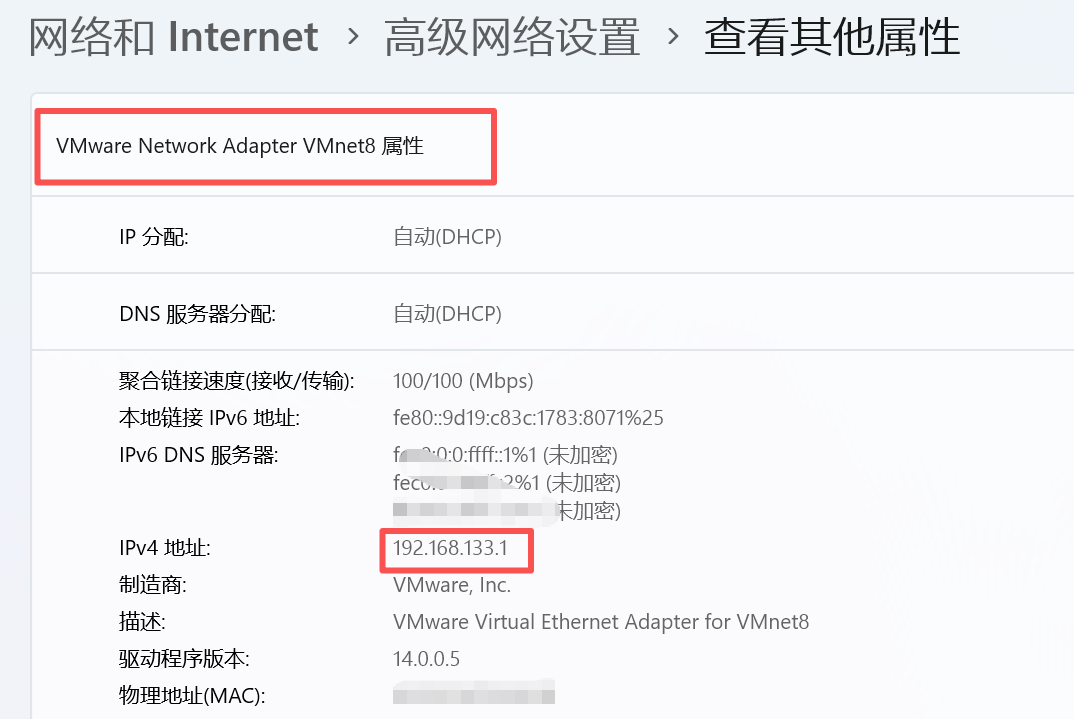 3.查看VMnet8 IP 地址