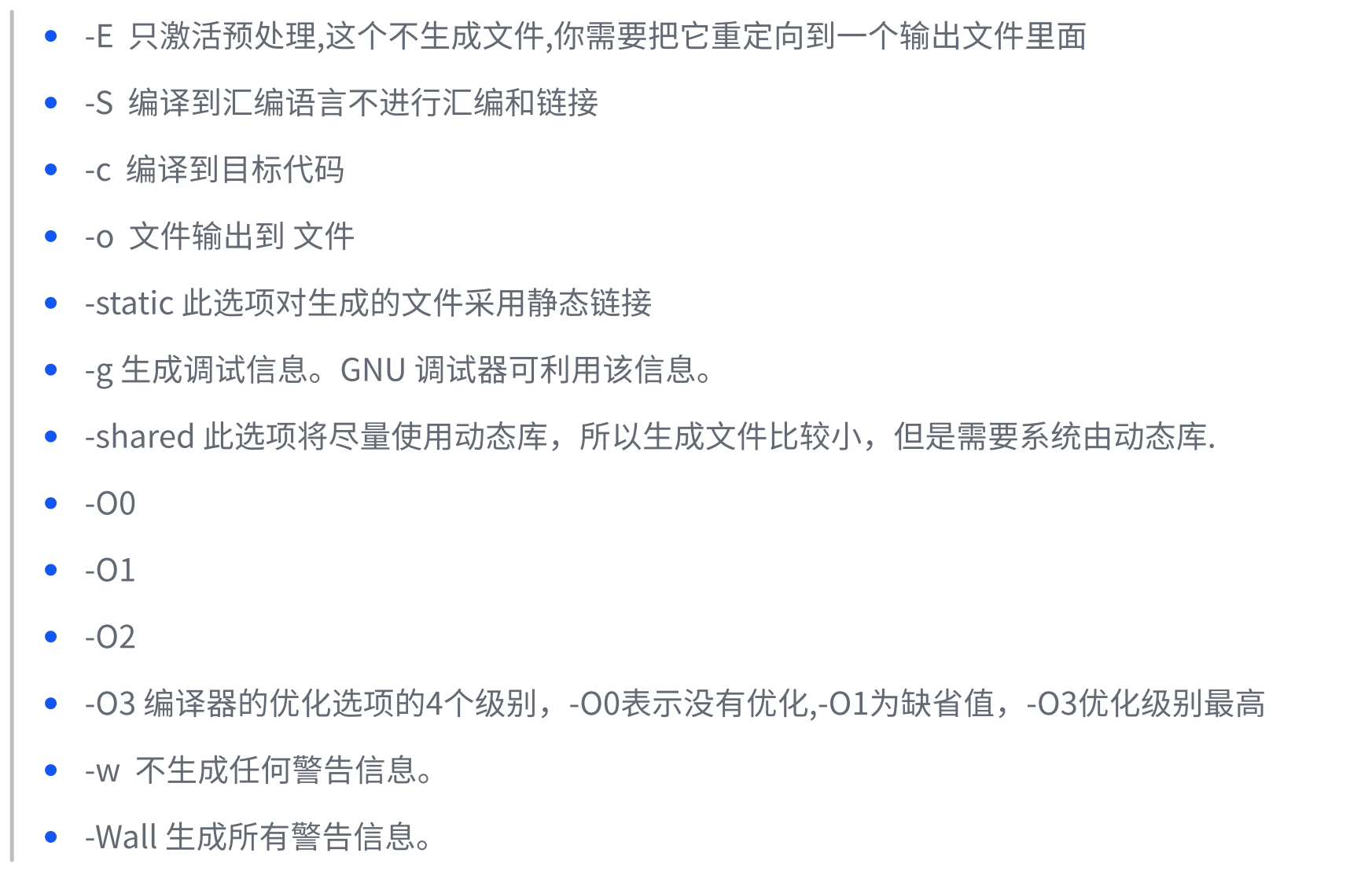 选项“-c”,该选项的作用是让gcc在编译到二进制文件阶段结束后停止编译过程。(生成文件后缀推荐使用.o)