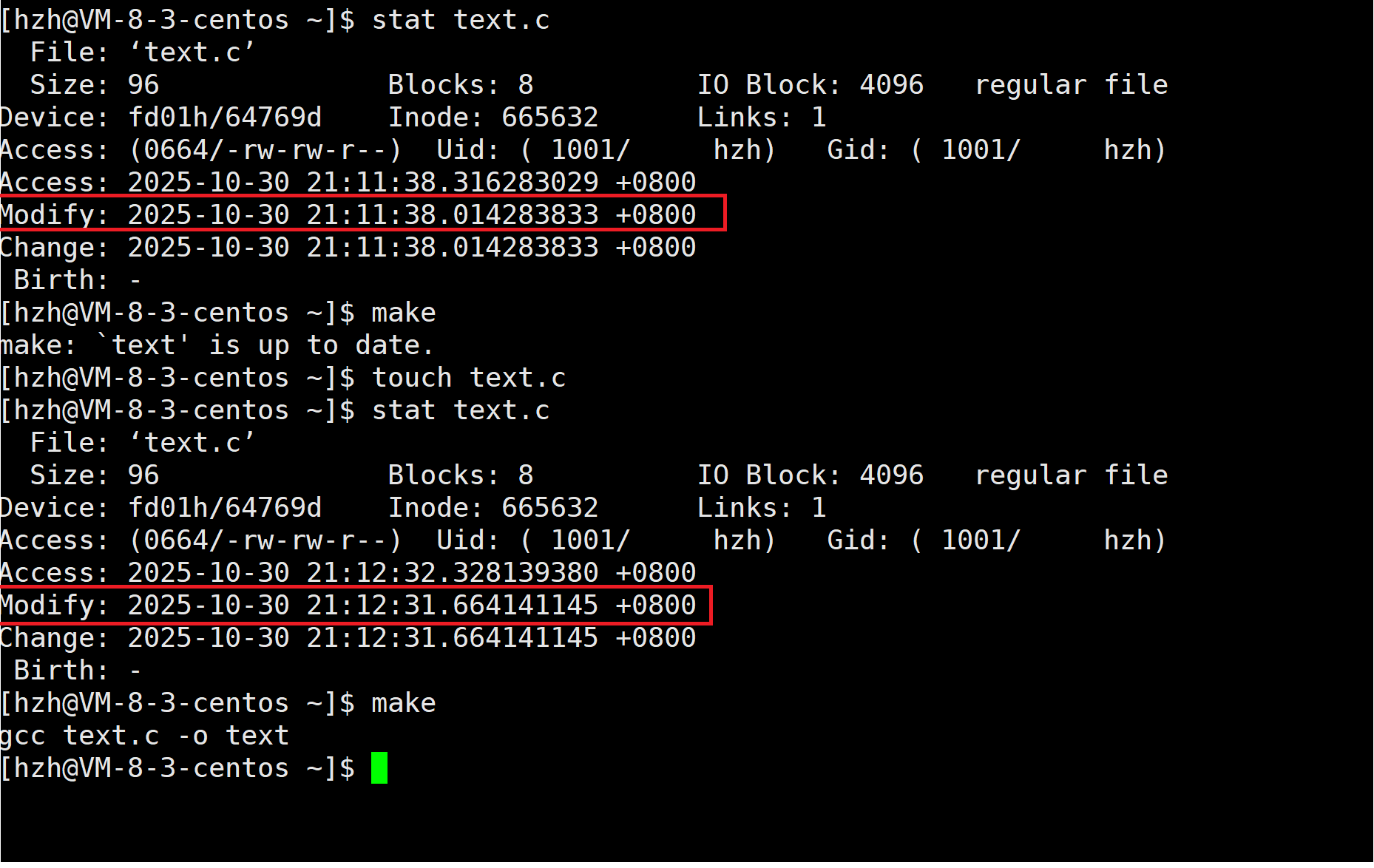 为什么改变Modify时间(或忽略Modify时间新旧变化)后可以再次执行旧gcc指令?原因如下: